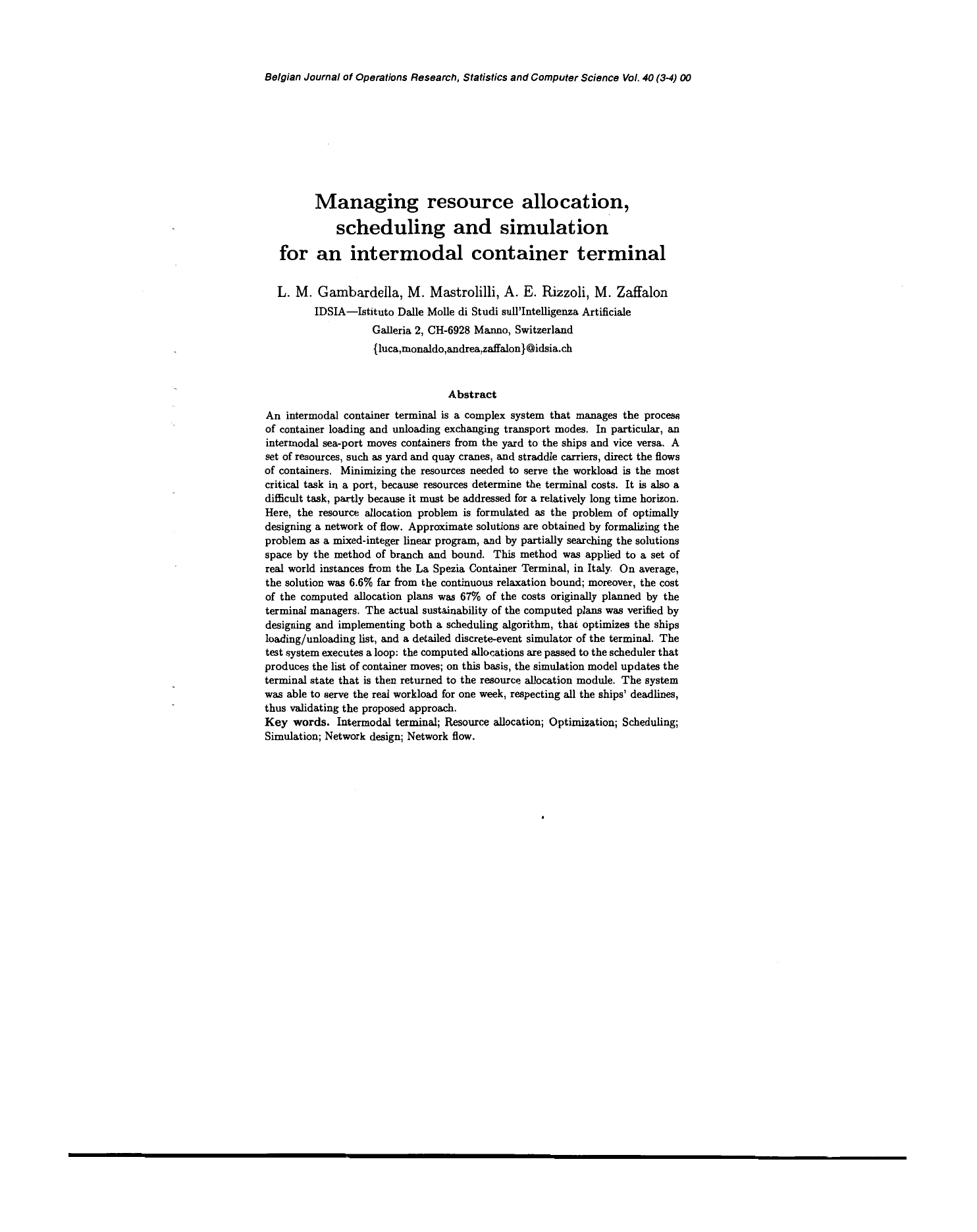 L. M. Gambardella, M. Mastrolilli, A. E. Rizzoli, M. Zaffalon