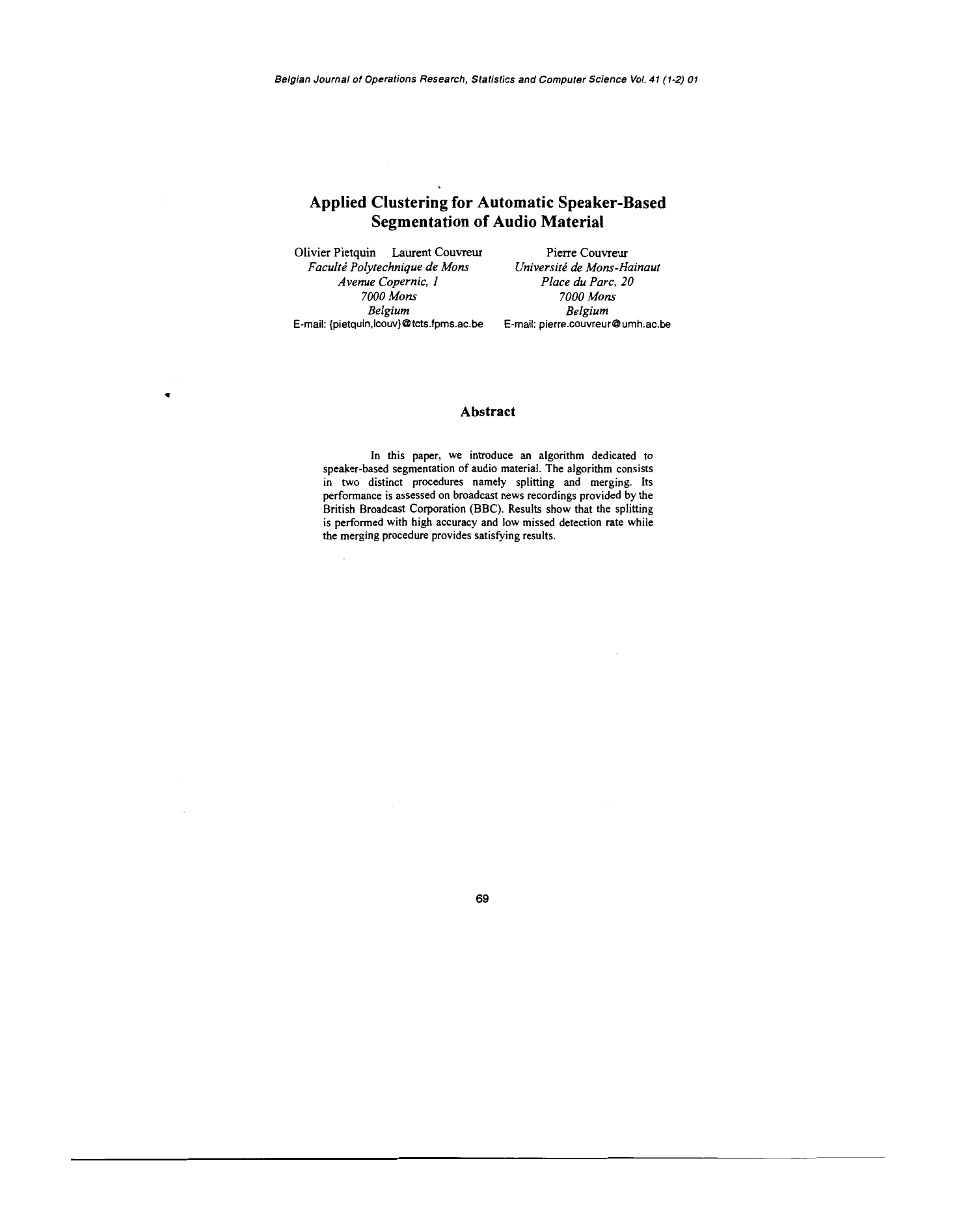 Applied ckustering for automatic speaker-based segmentation of audio material
